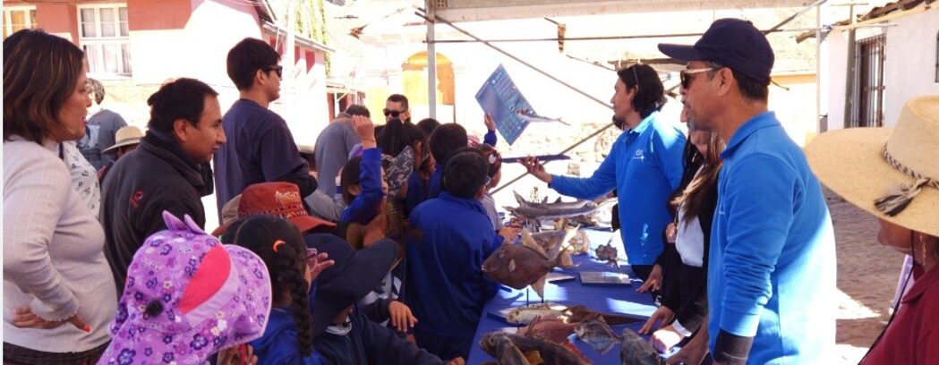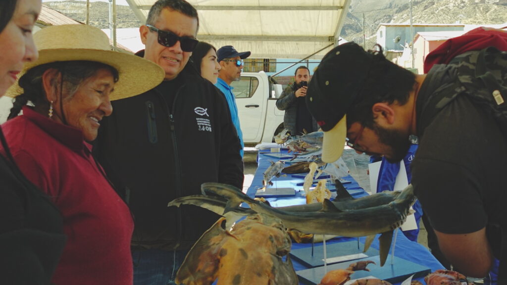 La muestra incluyó la exposición de especies hidrobiológicas, una presentación a cargo de Hernán Padilla, jefe de la Sede Regional IFOP Arica, y la proyección de un documental sobre el océano Pacífico, generando un espacio de aprendizaje e intercambio entre el mundo costero y el altiplano.