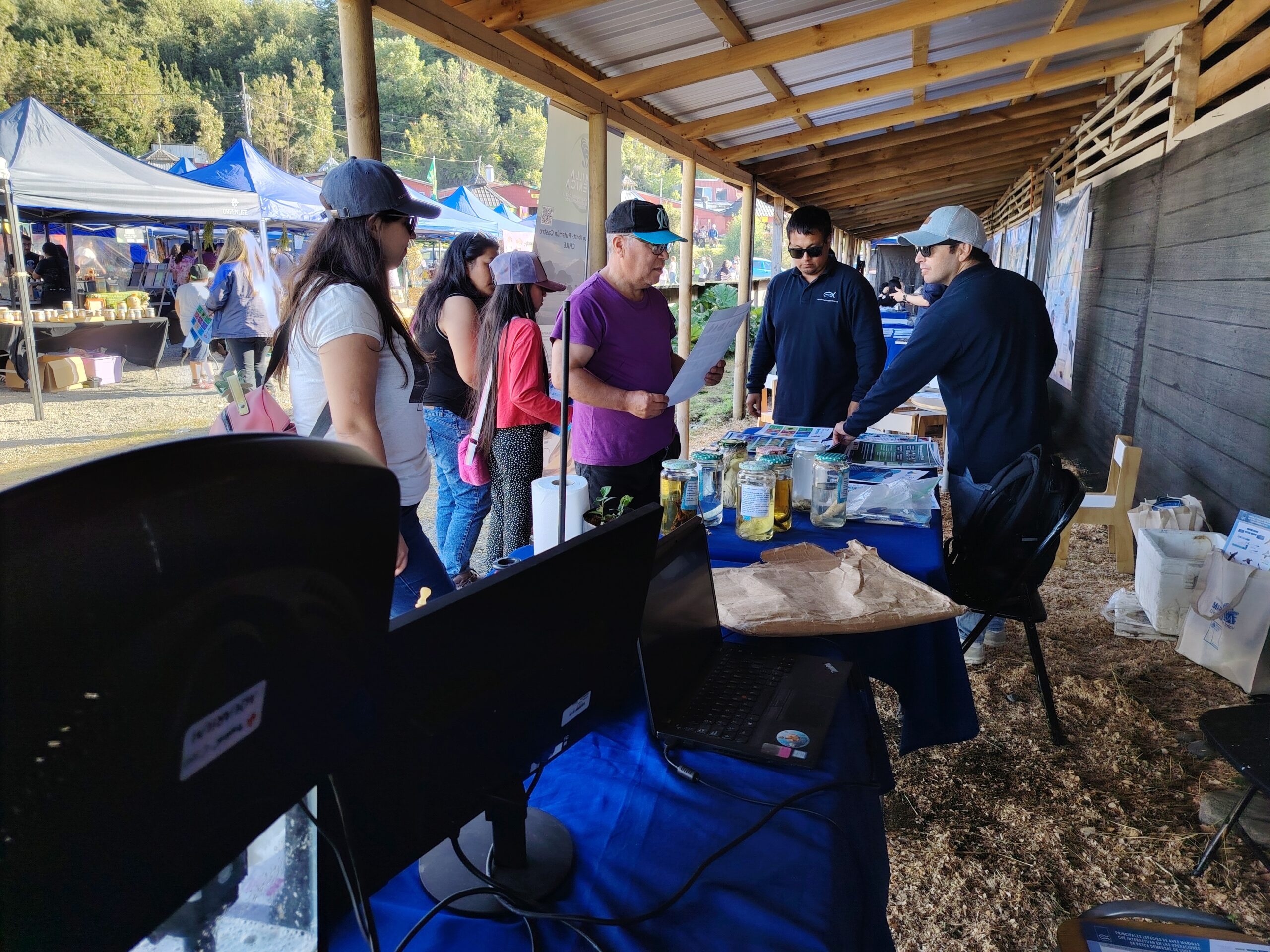 La I. Municipalidad de Quellón invitó al IFOP a presentar una muestra de sus labores científicas. En este sentido, la Coordinadora de Campo, Leslie Figueroa, junto los Observadores Científicos Daniel Triviño y Manuel Aillapán, exhibieron el “Programa de Observación Científica de Captura Sustentable”, que recopila datos a bordo para proteger recursos hidrobiológicos de importancia comercial, mediante muestreo directo. Además, el Investigador Semi Senior, Cristian Segura, mostró el “Programa de Monitoreo Ambiental y Larval de Mitílidos, que provee datos sobre abundancia larval, fitoplancton y variables ambientales para una captación sustentable de semillas de choritos (Mytilus chilensis), impulsando la mitilicultura eficiente vía plataformas como Semilla Endémica.