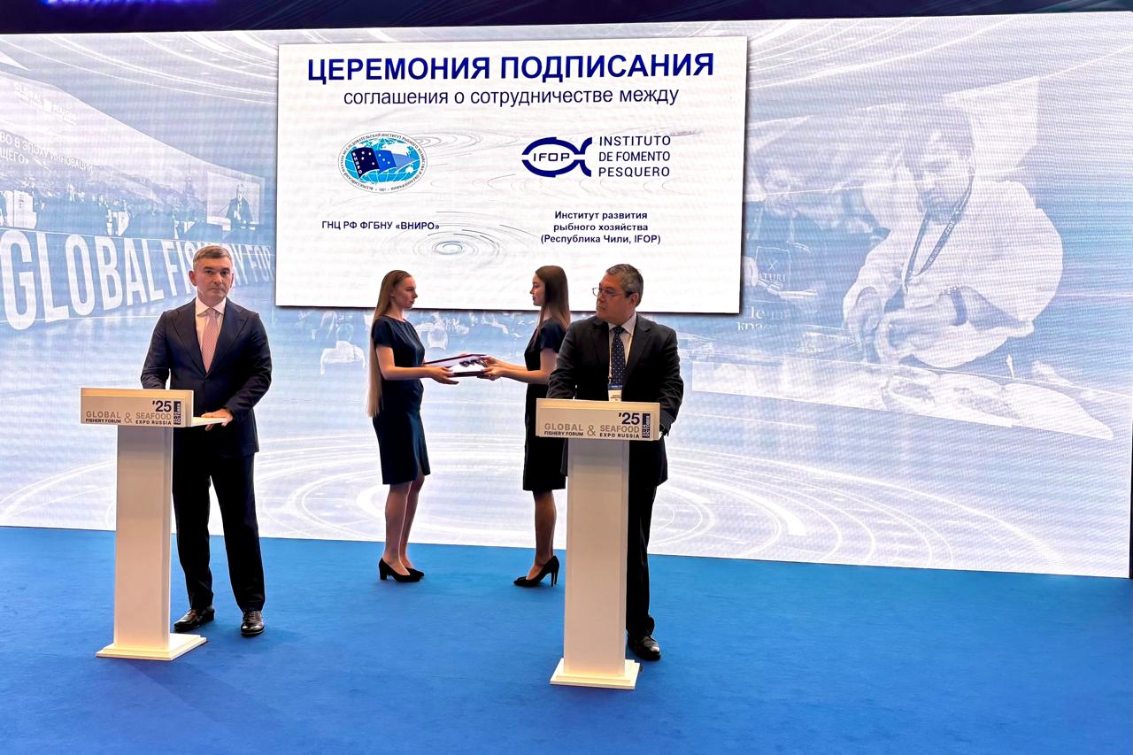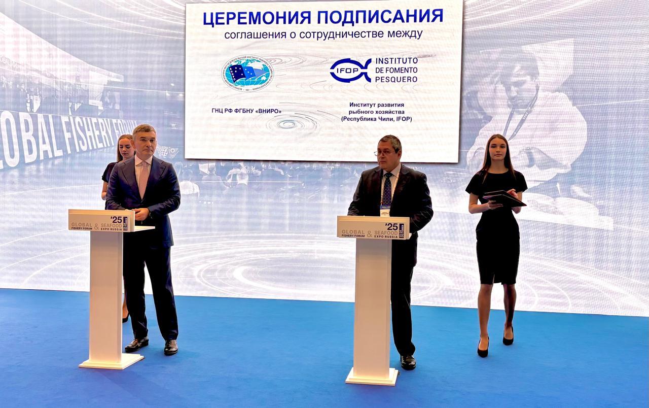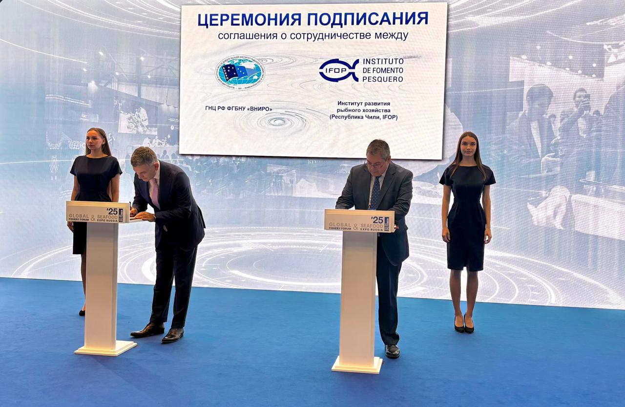 El principal hito de la misión fue la firma del Memorando de Entendimiento (MoU) entre VNIRO y el Instituto de Fomento Pesquero (IFOP), suscrito por el Director de VNIRO, Kirill V. Kolonchin, y el Director Ejecutivo de IFOP, Gonzalo Pereira Puchy.