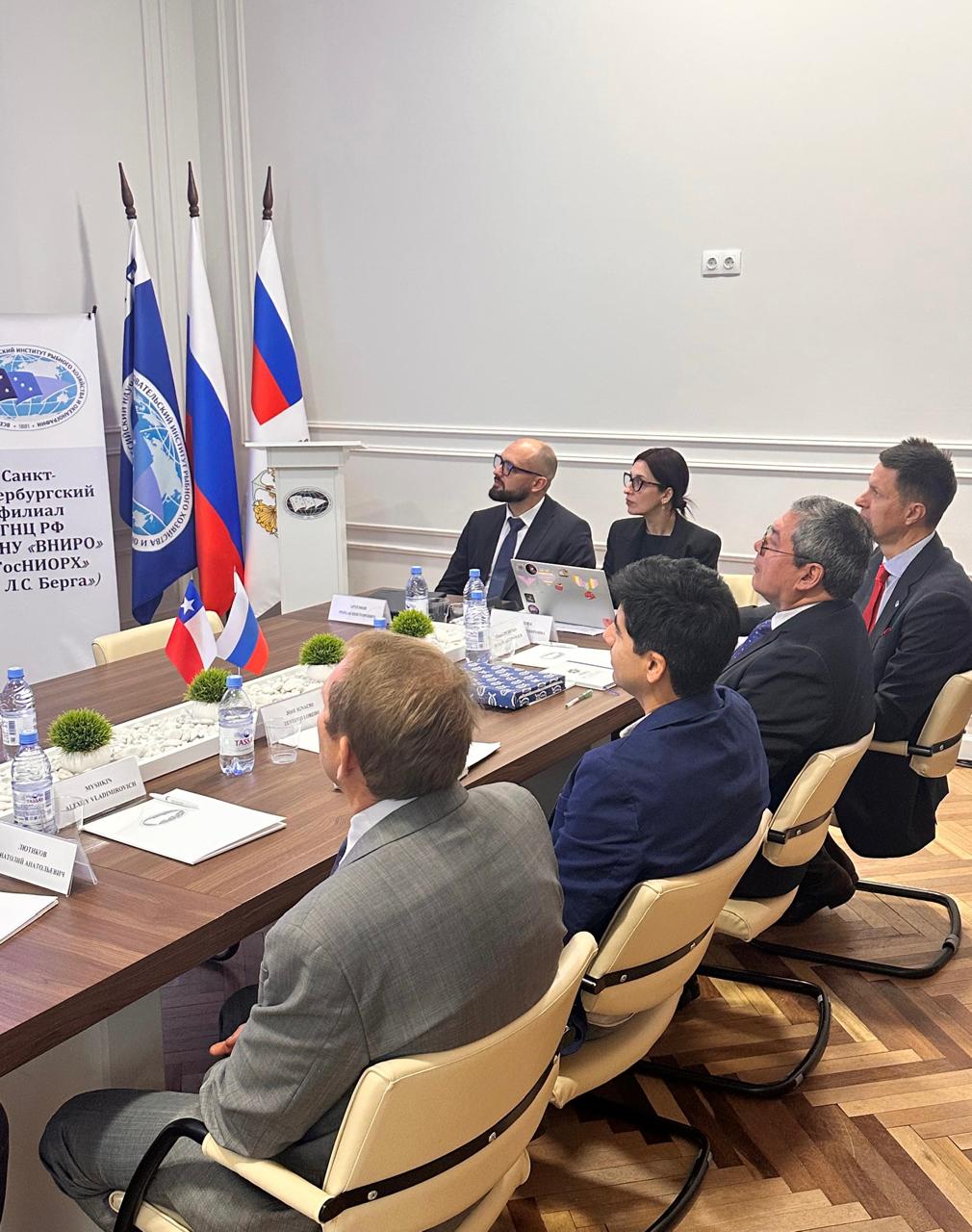 Durante la visita, la delegación chilena sostuvo diversas reuniones de trabajo con autoridades y especialistas del VNIRO, entre ellos Ilya V. Gerashchenko (Director Adjunto de Cooperación Internacional), Alexey V. Myshkin (Jefe de la División de Pesca de Aguas Dulces) y Yuliya A. Malinina (Subdirectora de la Sede San Petersburgo), entre otros destacados investigadores.