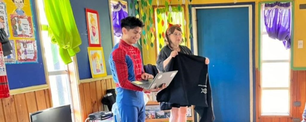 En la mañana del día 20 de noviembre, profesionales del Instituto de Fomento Pesquero participaron en una enriquecedora actividad de difusión científica dirigida a niños y niñas del Jardín Infantil Antulem ubicado en la localidad de Alerce, en Puerto Montt. Hasta el lugar concurrieron Mario Ortiz y Macarena Herrera, quienes, caracterizados especialmente para la ocasión, transformaron la jornada en un encuentro mágico orientado al aprendizaje temprano de los ecosistemas marinos y dulceacuícolas.
