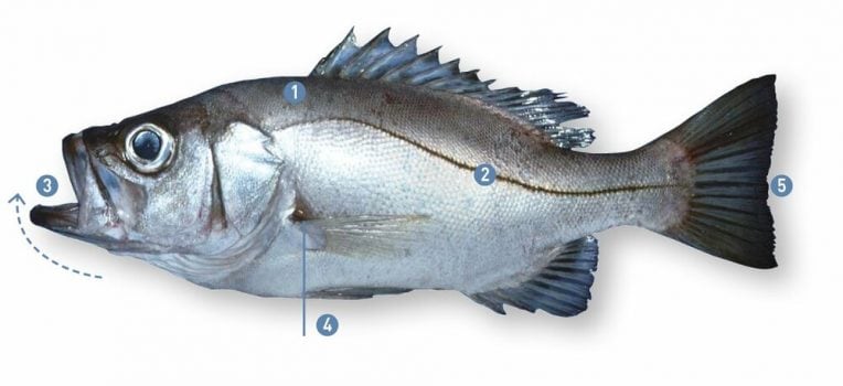1. De coloración general oscura, con una mancha oscura por detrás del opérculo (al inicio de la línea lateral), mientras que los flancos y vientre, son plateados. 2. Tiene...
