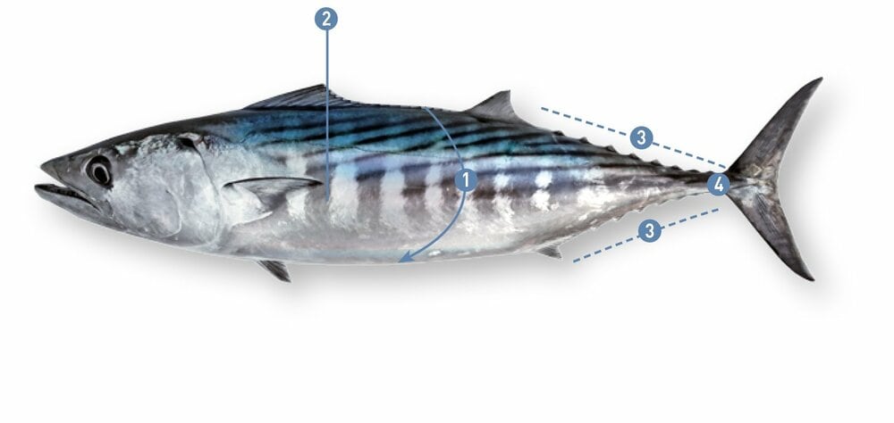 3. Por detrás de la segunda aleta dorsal y anal presenta pequeñas aletillas: 7-10 dorsales y 6-8 anales.