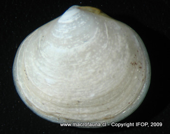 Concha circular, convexa, inequilateral, con umbos centrales inflados y prosogiros. En la charnela se observan dos dientes cardinales oblicuos, bien desarrollados. El diente posterior derecho y el anterior izquierdo son grandes y bífidos. La impresión muscular es notoria y muestra los aductores ovalados unidos por una línea paleal débil. La escultura externa la constituyen numerosas y finas estrías concéntricas, muy juntas entre sí, y algunas más destacadas. El periostraco es delgado y de color pardo amarillento. Ligamento externo sobresaliente (Guzmán et al., 1998).