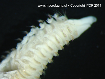 Prostomio fusiforme, puntiagudo anteriormente y sin cuernos frontales pero con una cresta occipital que se extiende posteriormente. Peristomio envolviendo los lados del prostomio. Branquias a partir del setígero 1 hasta casi el extremo posterior; están parcialmente o completamente fusionadas a las lámelas notopodiales anteriores pero son principalmente libres posteriormente. Accesorios de branquias en la parte posterior del notópodo en parápodo central o posterior. Sin ganchos encapuchados en el notópodo pero presentes en el neurópodo. Pigidio con una proyección medio ventral y un cirro anal prominente (Day, 1967).
