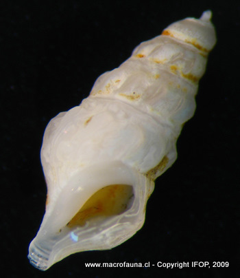 Concha turriforme, con 5 vueltas más la protoconcha aparentemente “lisa” y globosa. Cada vuelta porta una hilera concéntrica de grandes tubérculos ovales. La sutura está tapada por una hilera de pequeños gránulos, excepto en el última vuelta en el que se sobreponen dos hileras. En el dorso pueden aglutinarse más de dos hileras de gránulos. Las áreas subsuturales y suprasuturales son cóncavas. Abertura con callo columelar grande; labio grueso algo espesado exteriormente por las saliencias de los gránulos. Seno posterior bastante notable; canal sifonal corto y abierto (Ageitos, 1990;. Forcelli, 2000).
