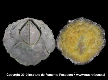 Su cuerpo se encuentra encerrado en una concha calcárea cónica, formada por cuatro placas de color blanquecino y fácilmente distinguibles ( Zagal, Carolina; Hermosilla, Consuelo; 2001).