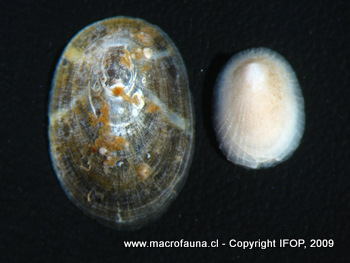 Concha elíptica, oval alargada, algo baja, frágil. Escultura de finas estrías radiales ranulosas y finas líneas de crecimiento. Ápice agudo muy anterior, inclinado hacia delante. Lado anterior recto y corto, posterior largo y convexo. Finas costillas radiales que al cruzarse con estrías de crecimiento forman protuberancias que crenulan levemente el margen. Blanco amarillento, con algunas bandas concéntricas. Interior liso y brillante, amarillo anaranjado con área central mas clara. Alcanzan tamaños de aproximadamente 6 mm de longitud (Forcelli, 2000).