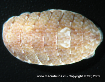 Animal pequeño de hasta 15 mm de longitud, alargado, relativamente elevado, aunque el dorso es redondeado; placas grandes, umbos no sobresalientes. Placa anal con mucro central y región postmucral ligeramente cóncavo. Todas las placas llevan bandas concéntricas y estrías de crecimiento en forma alternada. Se observa, asimismo, el reticulado de los estetos. Láminas suturales triangulares separadas por amplio seno. Color blanco amarillento. Cinturón color carne, angostado en los extremos, dividido en dos áreas por un surco periférico siendo la zona distal más ancha. Ambas áreas cubiertas por escamas-espinas (Ageitos, 1988).