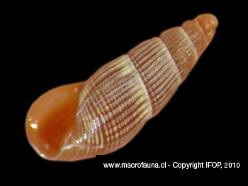 Alargada, frágil. Vueltas poco convexas, las primeras lisas y el resto con tenues costillas longitudinales que no llegan a la base, curvadas, separadas por surcos de igual ancho, cruzadas por finas estrías espirales. Abertura oval (Forcelli, 2000).