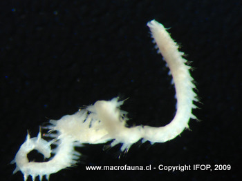 Con palpos y dos pares de cirros tentaculares presentes. Probóscide con cuatro mandíbulas; todos los segmentos anteriores con parápodos y setas .Prostomio reducido, con un par de ojos subdermales formados probablemente por fusión de dos pares, parápodos unirremos con un pequeño cirro dorsal, setas superiores simples y compuestas, setas inferiores compuestas (Díaz et al., 2009).