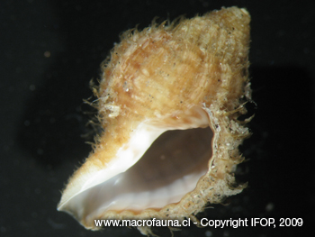 Concha oval gruesa, de espira alta, está formada por cuatro y media vueltas convexas, separadas entre sí por una profunda, sinuosa y marcada sutura. La escultura externa tiene estrías axiales gruesas y elevadas intersectadas por notorias estrías espirales que le dan un aspecto cancelado. En estas intersecciones se forman nódulos redondeados, moderadamente elevados. En los espacios interespirales hay dos cordones espirales más finos. La coloración externa es en tonos café pardo, cubierto por un periostráco piloso y corto. La abertura es ovalada, terminando en un corto, profundo y oblicuo canal sifonal. El labio externo es grueso y tiene, interiormente, una hilera de dientes, donde el inferior es el más prominente. La columela es cóncava, presenta una serie de pliegues columelares y, en el extremo superior, unos dientes parietales que no son muy notorios. El labio interior es delgado y amplio (Guzman et al., 1998).