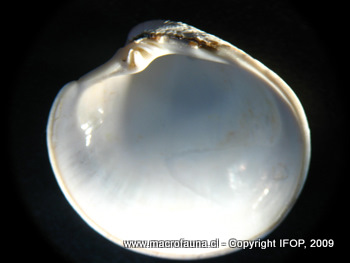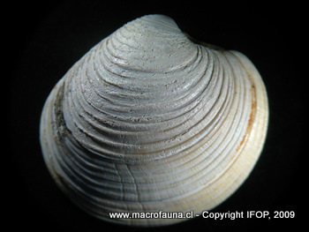 Concha subcuadrangular, gruesa, con umbos grandes dirigidos hacia el extremo anterior, el cual es más corto y estrecho que el posterior. La lúnula presenta numerosas costillitas oblicuas e irregulares. La escultura externa presenta costillas concéntricas delgadas, poco elevadas, intersectadas por tenues o levemente marcadas estrías radiales. El color de la concha es blanco. Internamente la concha muestra un seno paleal profundo que alcanza el nivel del cardinal posterior. Las huellas de los aductores son grandes y ovales. La charnela tiene tres dientes cardinales en cada valva, donde el mediano izquierdo y los dos posteriores derechos son bífidos. Color blanco, interna y externamente, talla grande hasta 9.5cm de longitud (Guzmán et al., 1998).