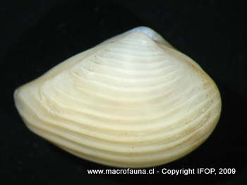 Individuos de aproximadamente 16 mm de longitud. Concha pequeña, sólida, gruesa, triangular. Sin ornamentación o formada por costillas concéntricas de desarrollo variable. Charnela más o menos interrumpida bajo el umbo (Villarroel,& Stuardo, 1998). La charnela posee 11 y 16 dientes a cada lado de la foseta, lado posterior muy agudo (rostrado). Umbos excéntricos, salientes. Interior blanco lustroso. Exterior con fuertes estrías concéntricas regulares. Marrón oliváceo (Forcelli, 2000).