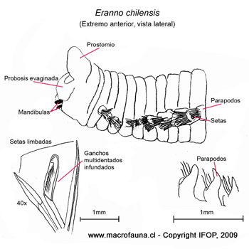 Son gusanos largos y cilíndricos con todos los segmentos corporales prácticamente iguales. Prostomio corto a largo, cónico a suboval o puntiagudo, sin ojos y en ocasiones con pequeñas antenas. Peristomio formado por uno o dos segmentos ápodos más o menos fusionados. Faringe muscular con cuatro a cinco pares de maxilas quitinosas (a veces parcialmente calcificadas) y dos mandíbulas ventrales fusionadas. Parápodos subbirrámeos sin cirros ventrales (Orensanz, 1990), con lóbulos parapodiales que pueden cambiar de forma a lo largo del cuerpo. Sin branquias, excepto en los géneros Ninoe y Paraninoe que las presentan simples y filamentosas. Las setas incluyen capilares simples, limbadas, ganchos encapuchados simples o compuestos y bidentados o multidentados. Pigidio con dos a cuatro cirros anales (Solis et al., 1995).
